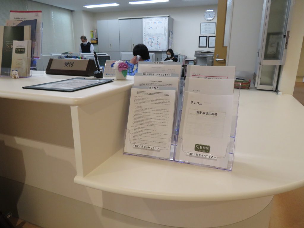 「運営規定」「重要事項説明書」「事業報告」等は受付に置いていましたが、ご入居者やご家族が、閲覧し難いので1枚1枚にして掲示してくださいと助言を受けました。掲示場所も限られているため、1枚1枚は難しいので、受付の低いカウンターに「ご自由に閲覧されてください」と判り易く表示致しました。開設して14年目、まだまだ未熟なところが沢山あります。指定更新に鑑み、14年前の初心に帰り、邁進致します。
