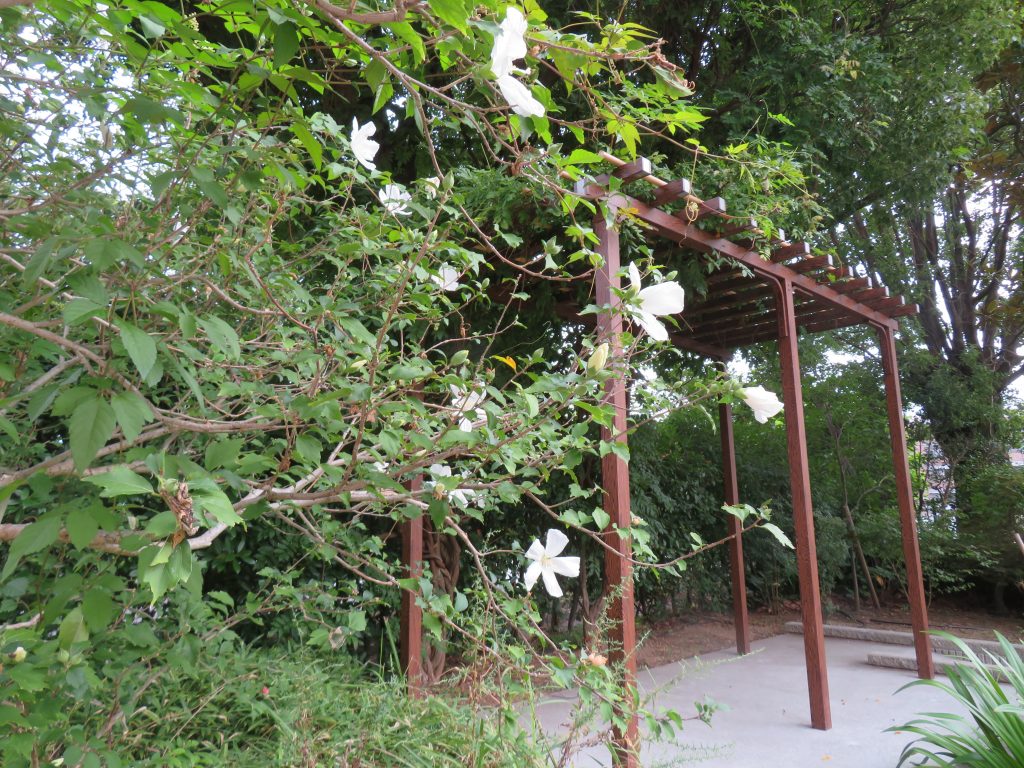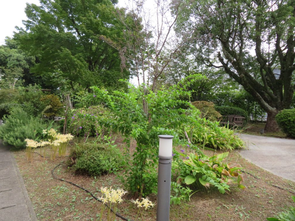 猛暑、酷暑も峠を越えたでしょうか。 今朝の中庭です。ご入居者と散策できそうです