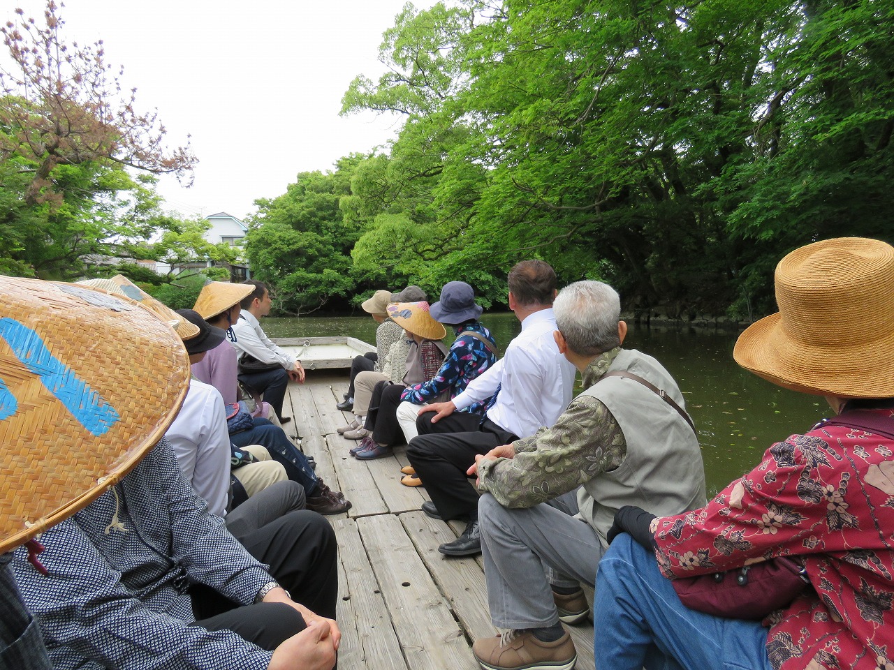 5月20日(月)、恒例の日帰りグルメに行ってまいりました。今回の行先は水郷「柳川」。柳川市内に到着した後、まずは川下りを体験。乗船者全員でしゃがみこみ、船で橋の下をくぐり抜けた時には、皆さま歓声を上げておられました。船頭さんの風情ある舟歌を聴きながら、1時間ほどのお堀めぐりを楽しみました。続いて、昼食会場「白柳荘」では、柳川名物「鰻のせいろ蒸し」をはじめとする懐石料理を堪能。美味しい料理にお酒も進んだご様子でした。昼食後は、突然の大雨に見舞われつつも、柳川藩主立花邸「御花」へ向かいました。1500個の庭石と280本の松から成り立つ庭園「松濤園」にてクロマツに彩られた美しい眺望を楽しんだ後、「立花家史料館」にて立花家伝来の豪華なひな人形細工や甲冑、刀剣等を鑑賞しました。最終目的地は「高橋商店」。各種メディアにて取り上げられ話題となった調味料「ゆずすこ」を開発し、その他にも、有明漬等の地元の特産品を多数取り扱っているお店です。ショッピングを楽しみ、皆さま大満足のご様子で、帰路につきました。