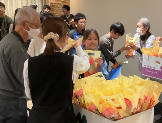 小学生から入居者様にお花のプレゼントをいただき、