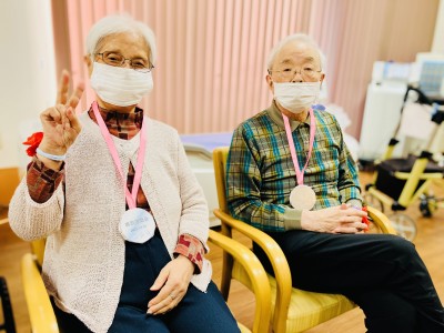 いつもは穏やかなご利用者様も、思わず笑顔で声援を送られていました。