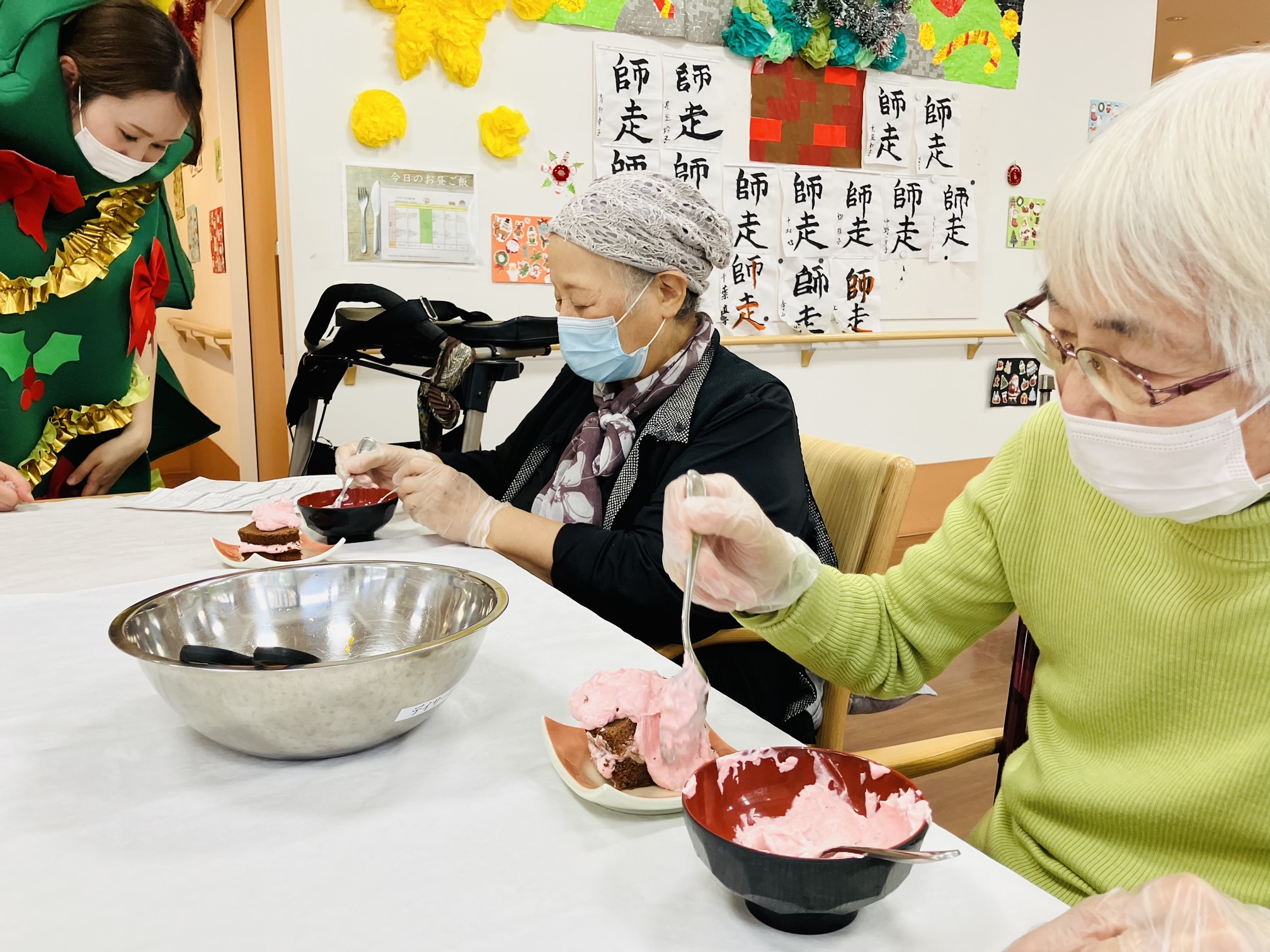 まずは、利用者様と一緒に行うクリスマスケーキ作り。
